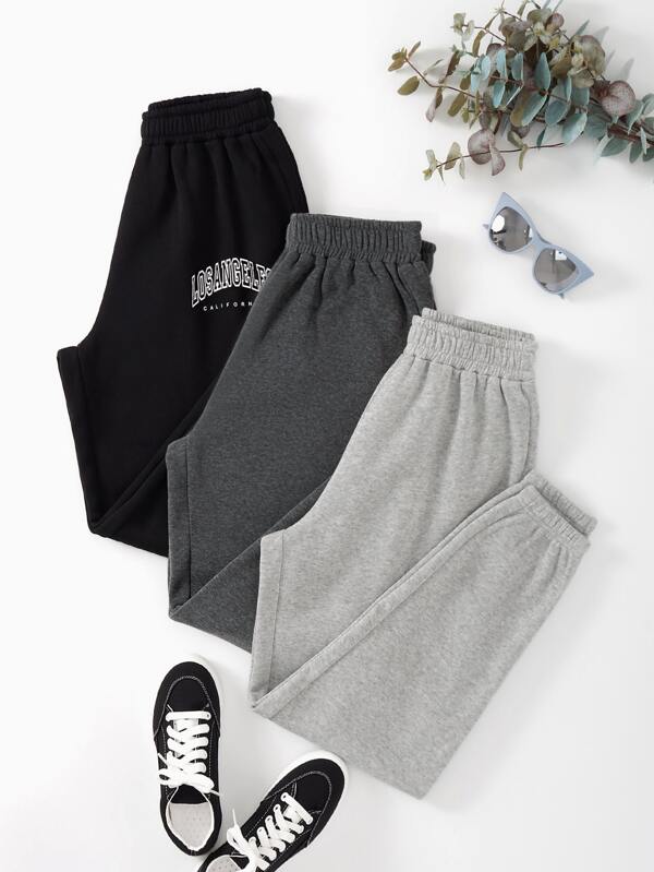 3pcs Letter Graphic Elastic Waist Thermal Lined Sweatpants