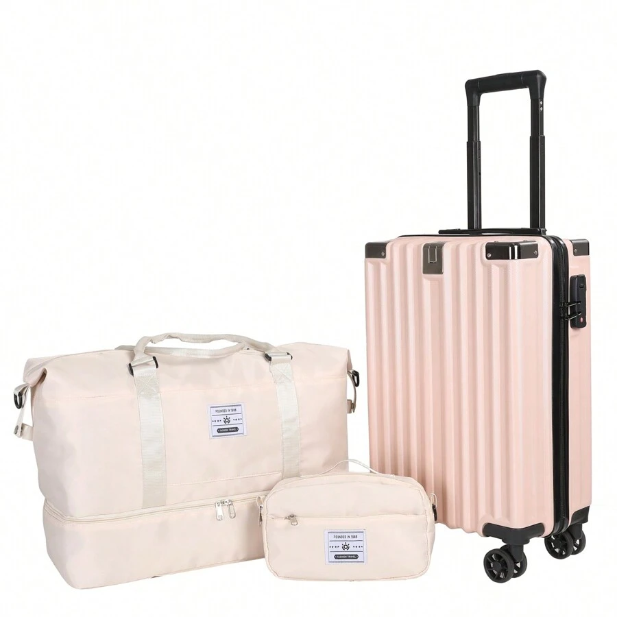 3pcs Luggage Set With Mute Universal Wheels For Women & Men, Including A 20 Inch Carry-On Suitcase, A Cosmetic Bag And A Large Capacity Separated Wet And Dry Bag Trolley Case For Travel For Trip For School For Holiday For Honeymoon Vacation For Study Abroad For Student Bag For School School Accessories School Stuff