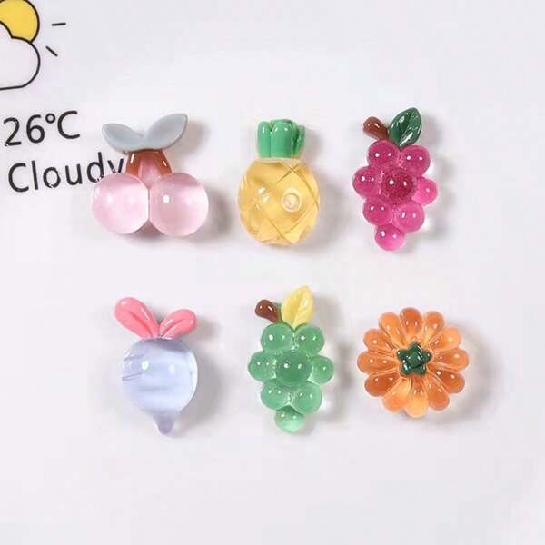 3pcs Mixed Transparent Fruit Series Resin Diy Jewelry Accessories For Cream Glue Phone Case Materials, Including Cherry, Pineapple, Pumpkin