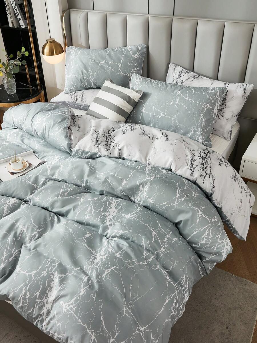 3pcs Modern American Style Bedroom Bedding Sets With Marble Pattern & Multicolor Printings (1 Quilt Cover & 2 Pillowcases, No Comforter) Suitable For All Seasons