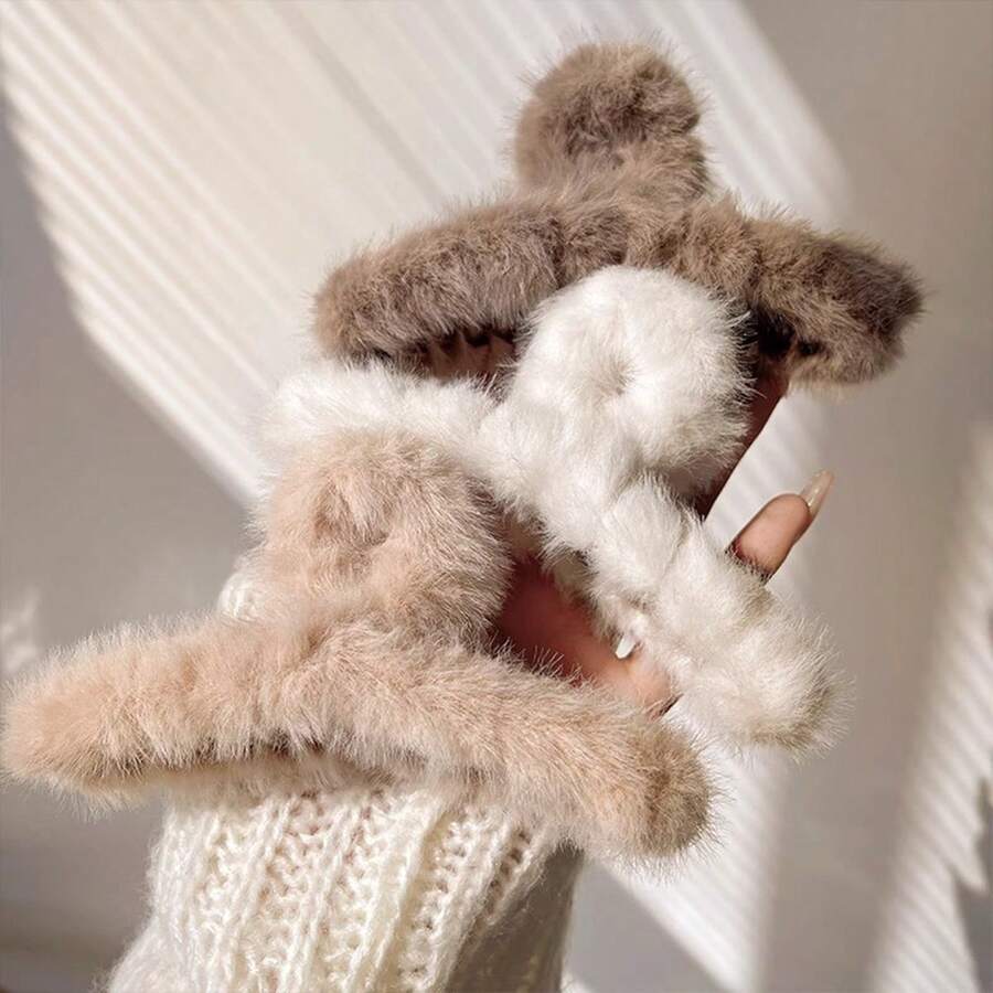 3pcs Multicolor Fluffy Hair Clips For Women, Autumn/winter Hair Accessories, Elegant And Chic