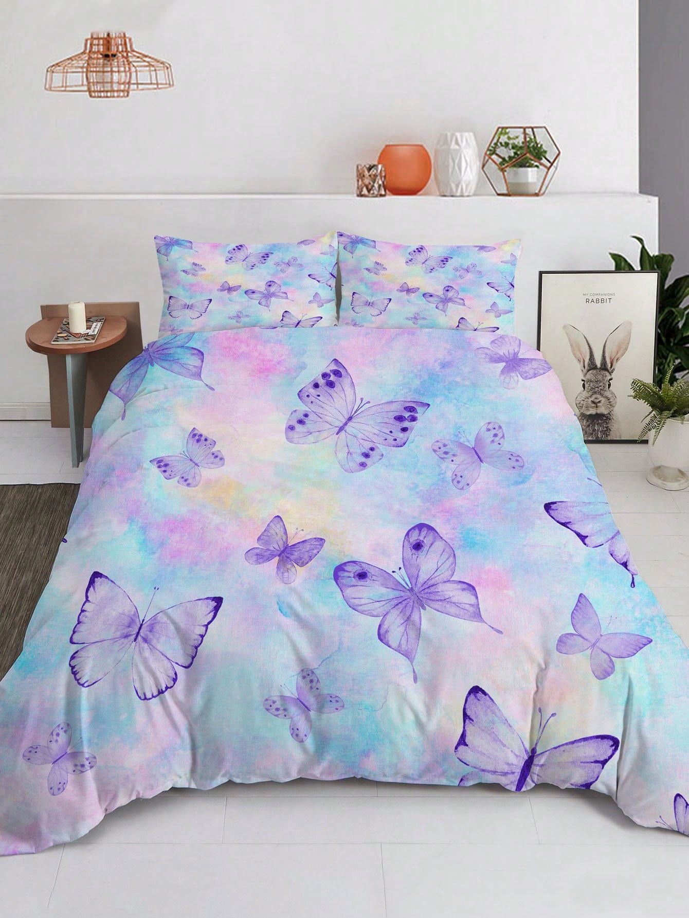 3pcs Purple Butterfly Down Duvet Cover Set (1 * Duvet Cover + 2 * Pillowcase, Coreless), Blue Purple Watercolor Butterfly Bedding Set, Girls And Teenagers Bedding Decoration