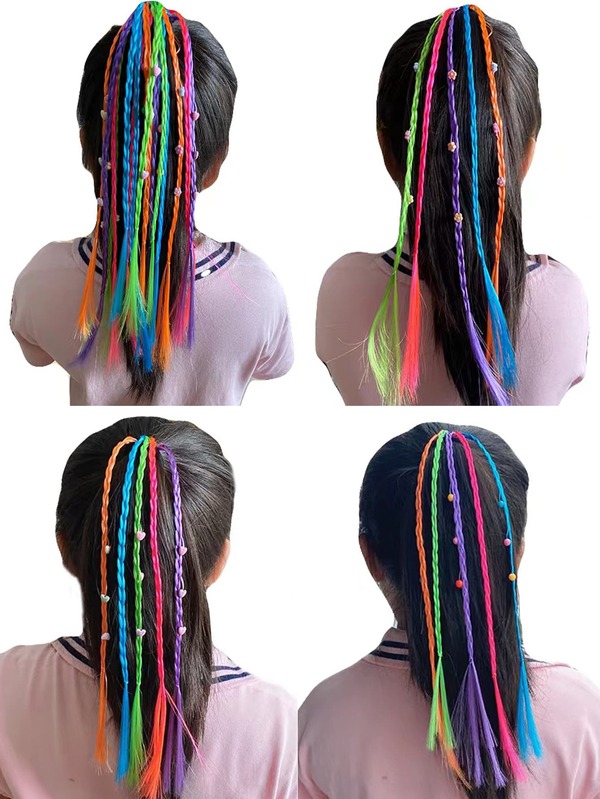 3pcs Random Color Resin Flower, Heart Shaped Bead & Pearl Decor synthetic Hair Braids For Girls