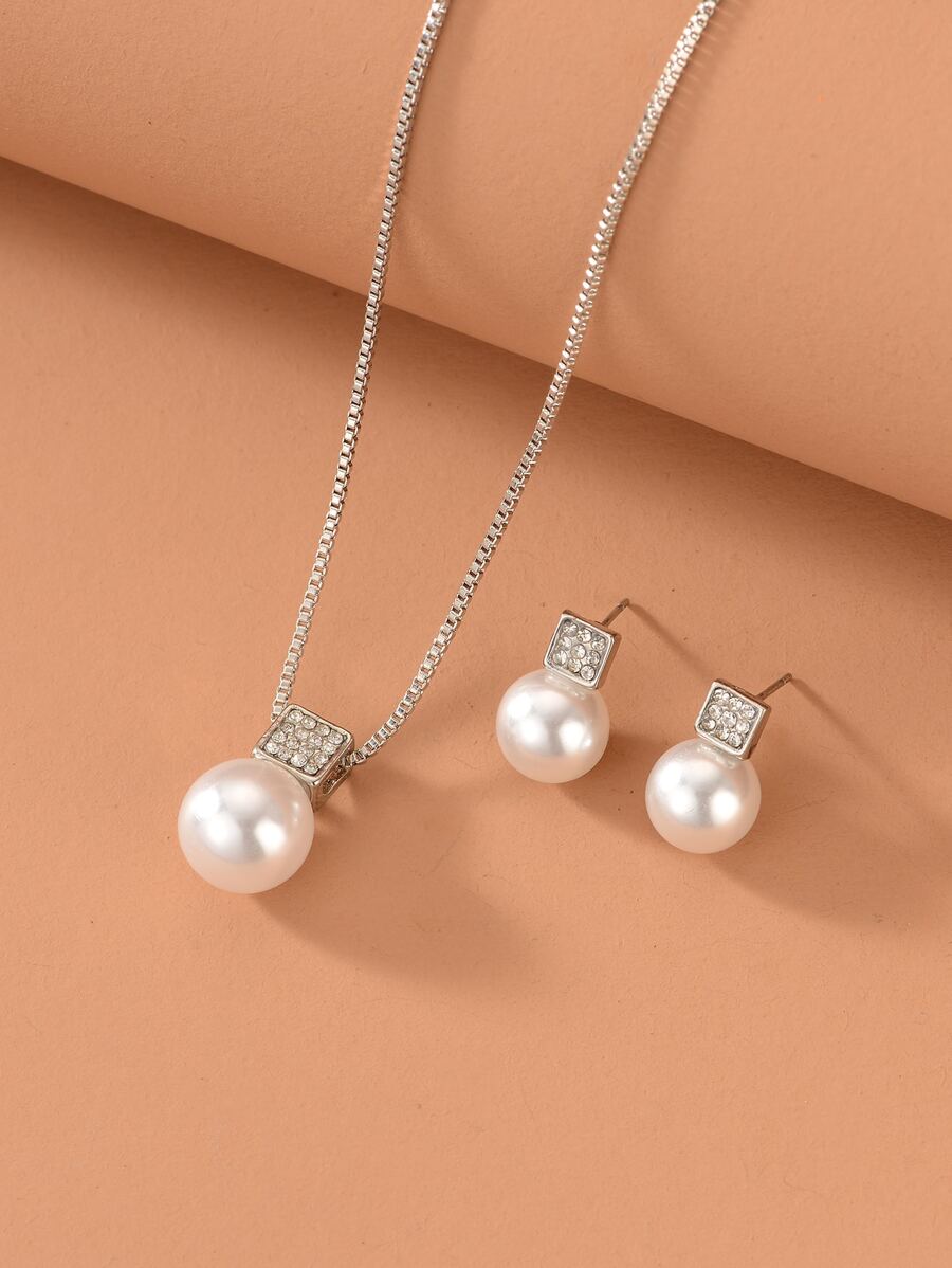 3pcs Rhinestone & Faux Pearl Decor Jewelry Set