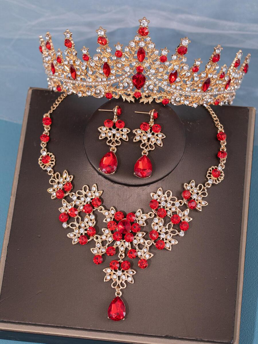 3pcs Rhinestone Decor Jewelry Set & Crown Design Headband