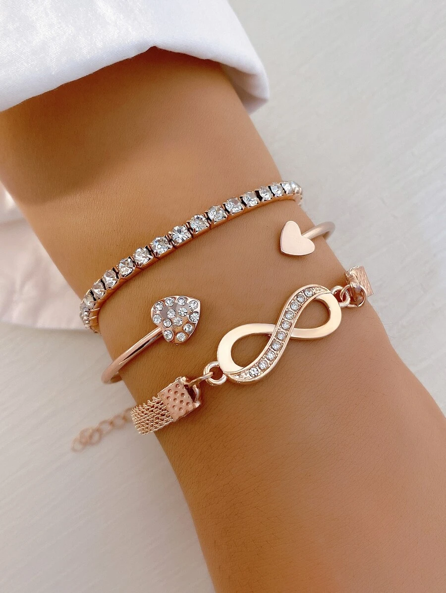 3pcs Rhinestone Heart Decor Bracelet