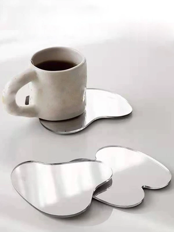 3pcs Silver Geometric Shaped Coaster, Minimalist PMMA Cup Coaster For Desk, Table