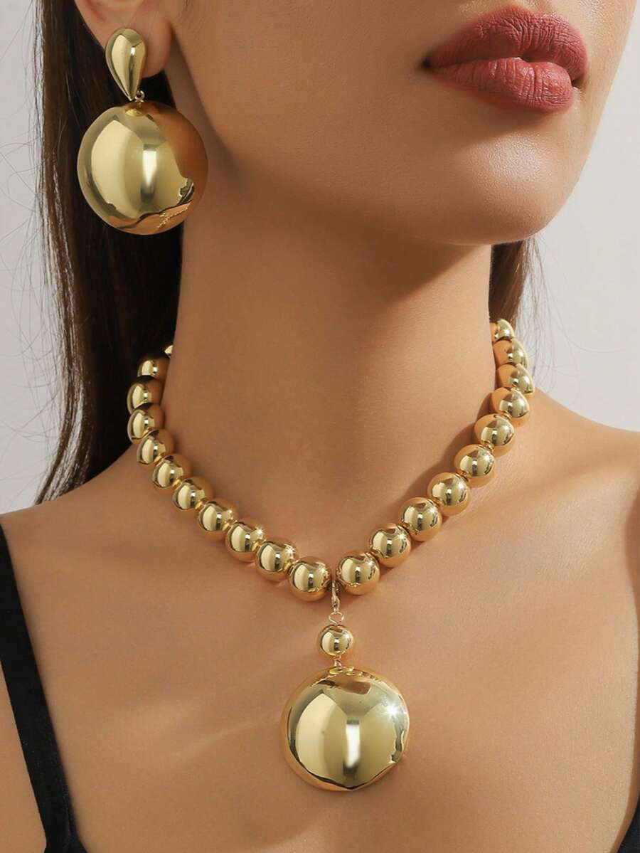 3pcs Simple & Elegant Pearl Necklace & Earrings Set, Detachable Metal Semi-Circle Pendant, Suitable For Women, Party, Festival, Wedding