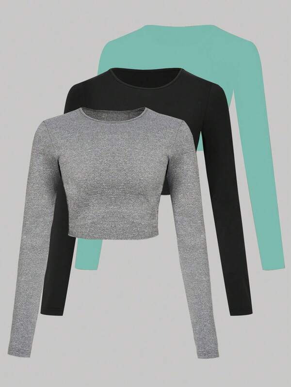 SHEIN Essnce 3pcs Solid Color Long Sleeve T-Shirt