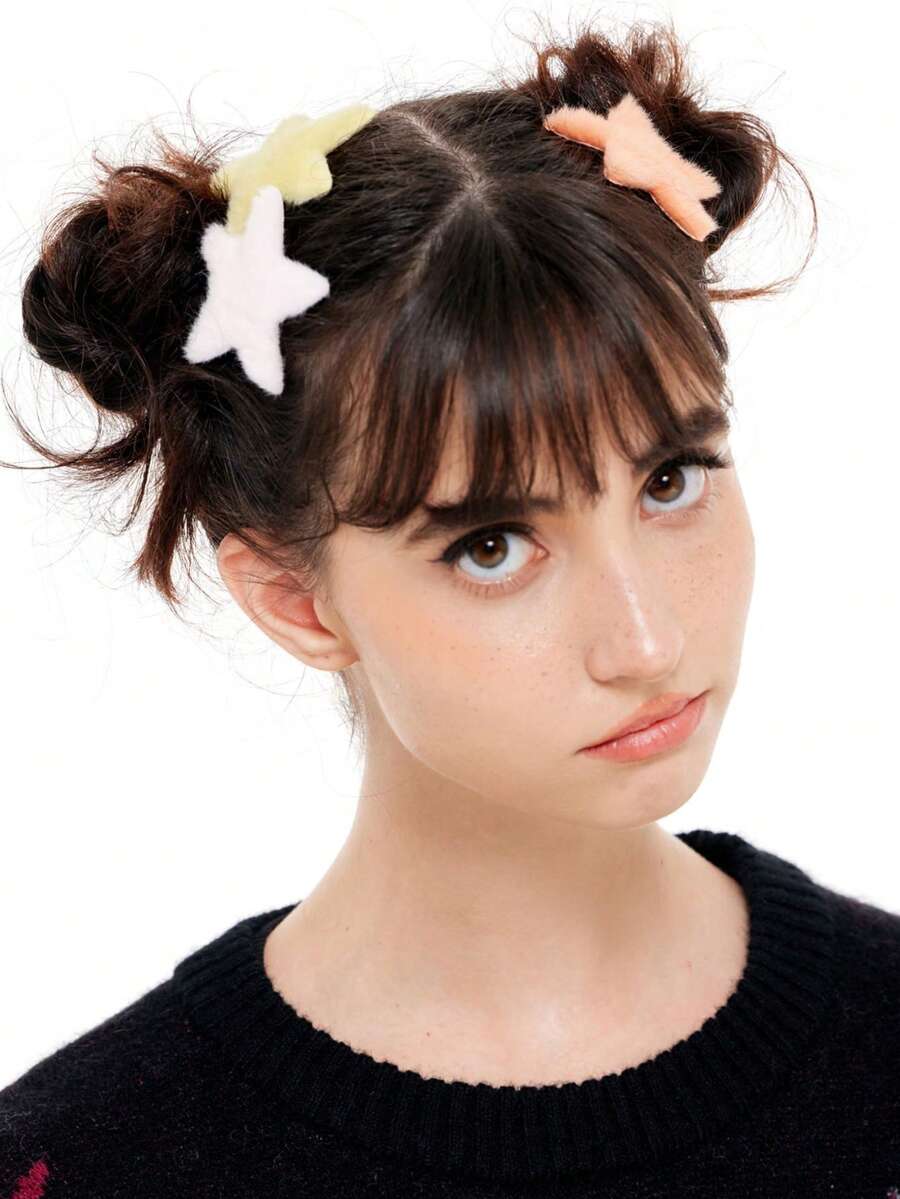 3pcs Sweet Plush Star Hair Clips For Bangs And Haipieces For Girls, Y2k Pentagram Hairpin