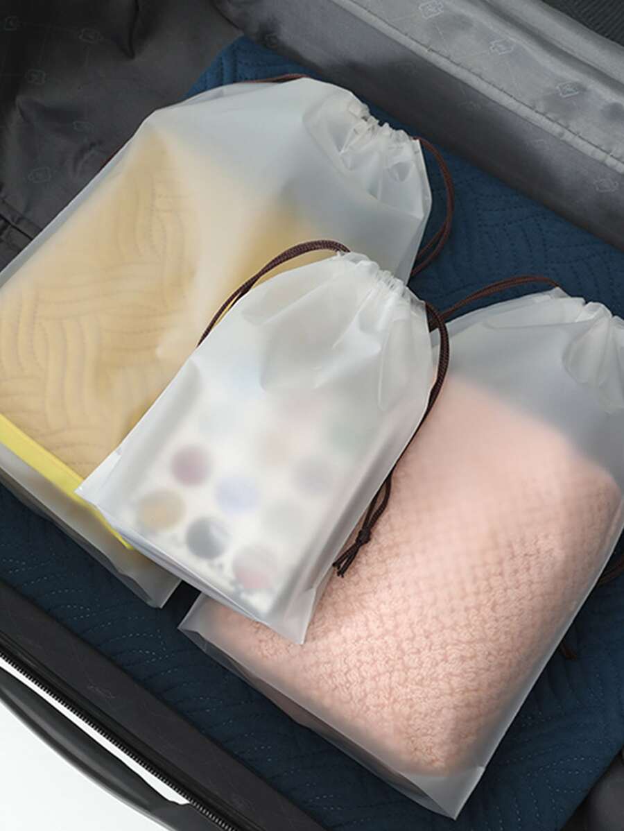 3pcs Travel Packing Bag, White PEVA Drawstring Storage Bag, Multifunction Shoes Storage Bag For Travel