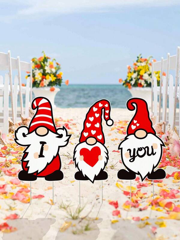 3pcs Valentine'S Day Dwarf With I Love You Heart Shaped Decorative Ground Insert, Outdoor Valentine'S Day & Wedding Decor Sign, Colored Printed Outdoor Waterproof Material Decorative Signage, Used For Valentine'S Day & Wedding Decoration