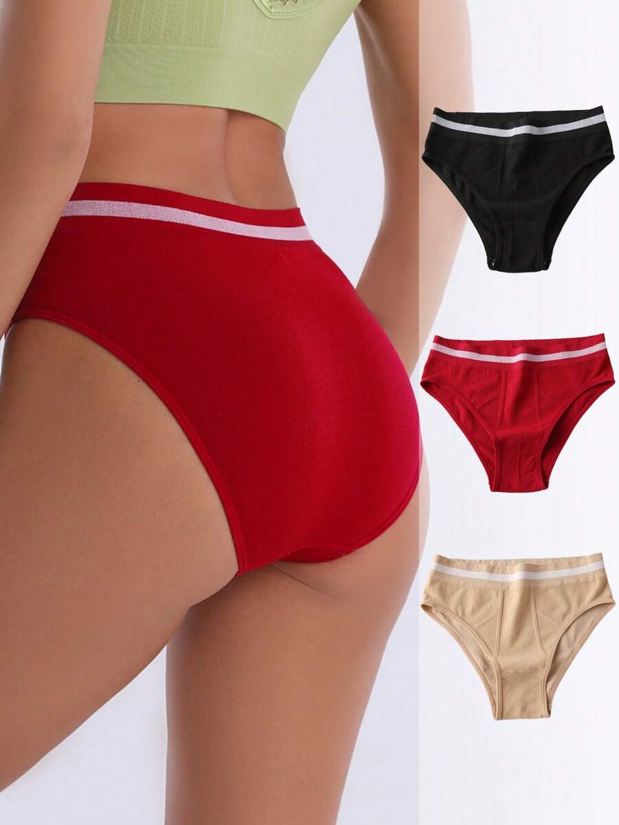 3pcs Women'S Color Block Leisure Triangle Panties
