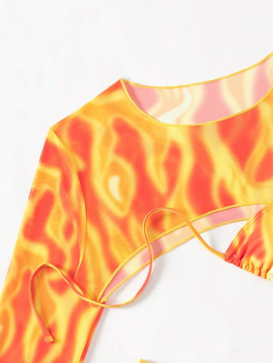 SHEIN Swim Y2GLAM 3pcs Women's Tie Dye Halter Neck Swimwear Set