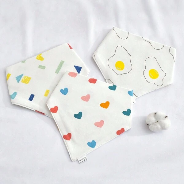 3pcs/Pack Baby Boys' And Girls' Cartoon Patterned Triangle Bibs For Spitting Up