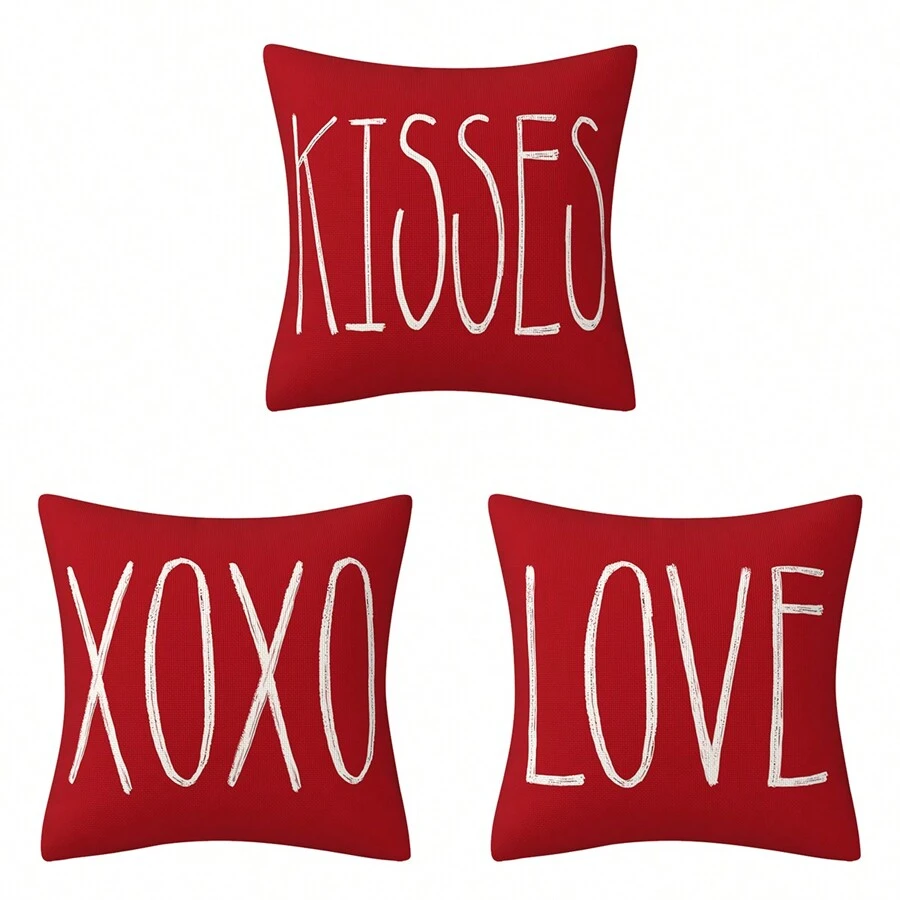 3pcs/Set 18x18 Inch Valentine'S Day Decorative Kiss Xoxo Love Pillow Cases