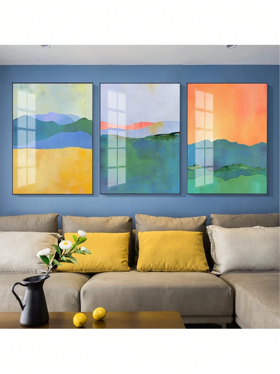 3pcs/Set Abstract Colorful Landscape Printed Canvas Painting In Nordic Style, Modern And Minimalist Design, Frameless Wall Art For Decoration In Bedroom, Living Room, Office, Cafe And Home