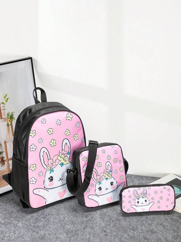 3pcs/Set Cartoon Printed Polyester Backpack With Adjustable Shoulder Straps And Zipper Closure, Very Suitable For Traveling, Camping, And Outdoor Activities