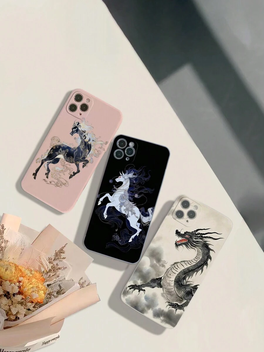 3pcs/Set Chinese Dragon & Horse Design Printed Phone Case With Straight Edge For Iphone/Galaxy/Xiaomi