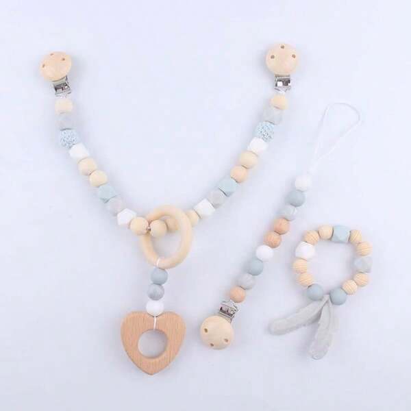 3pcs/Set Creative Diy Children'S Art And Crafts Wooden Elephant Necklace, Feather & Silicone Beaded Bracelet For Kids Jewelry Making