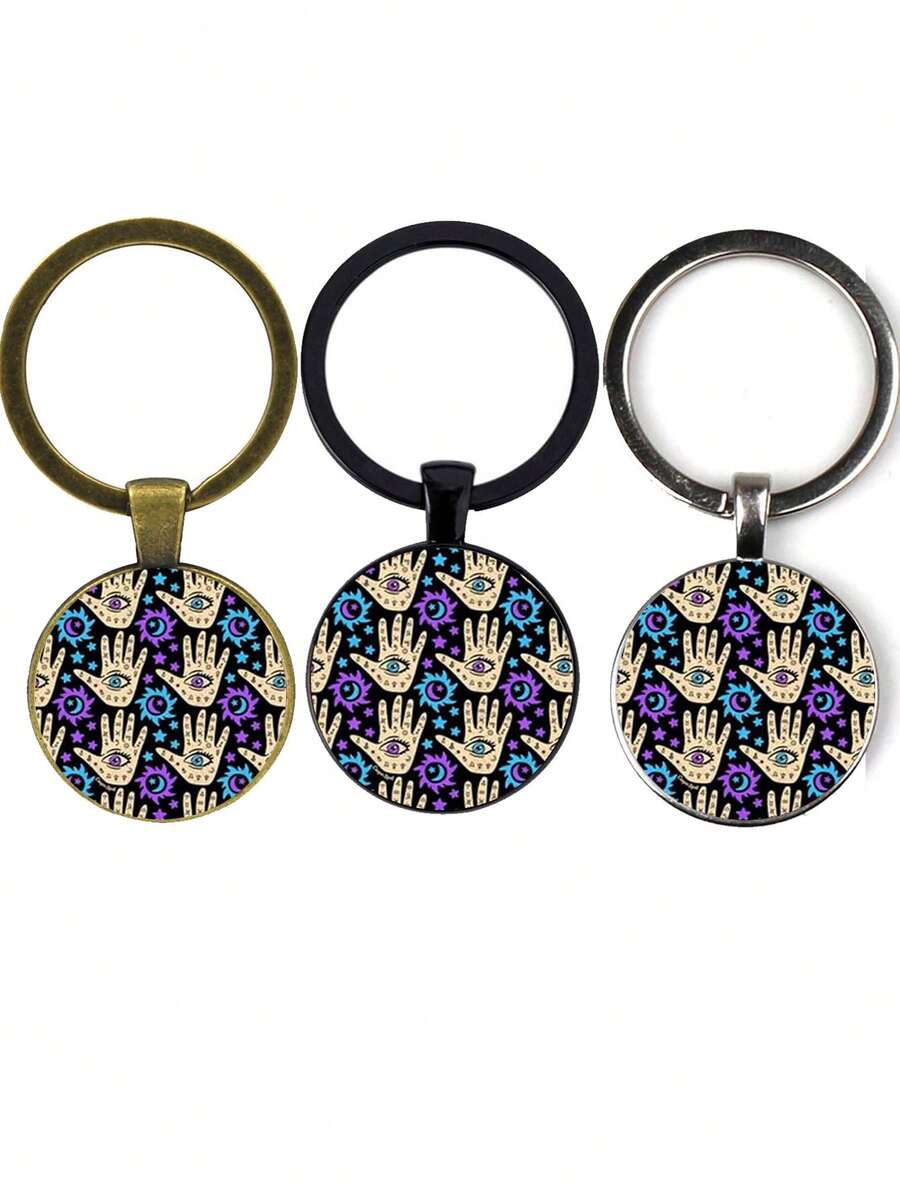 3pcs/Set Eye Printed Keychain, One Each In Black, Antique Bronze And Silver, Creative Teacher'S Day Gift For Lover, Friend, Family