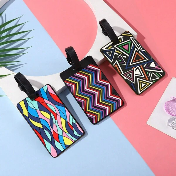 3pcs/Set Geometric Pattern Soft Rubber Grid Pvc Boarding Pass, Creative Soft Rubber Card Cover Luggage Tag, Luggage Check-In Tag Travel Accessory