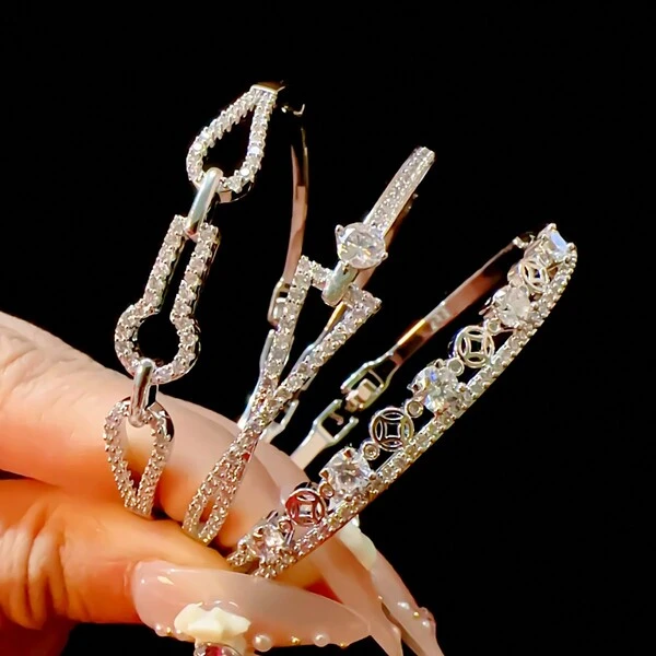 3pcs/Set Popular Geometric Design & Diamond-Inlaid Bangle Bracelet, Versatile And Luxurious Wristband