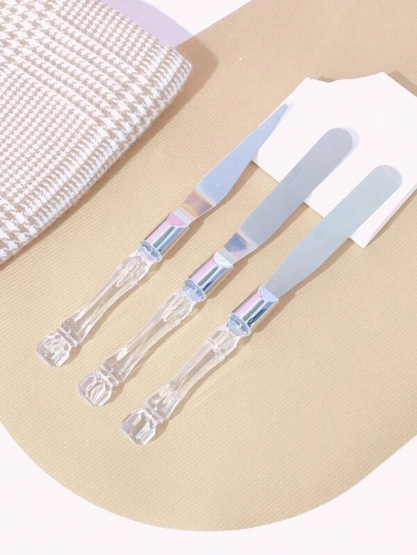 3pcs/Set Stainless Steel Cake Decorating Spatulas With Transparent Handle For Home Baking