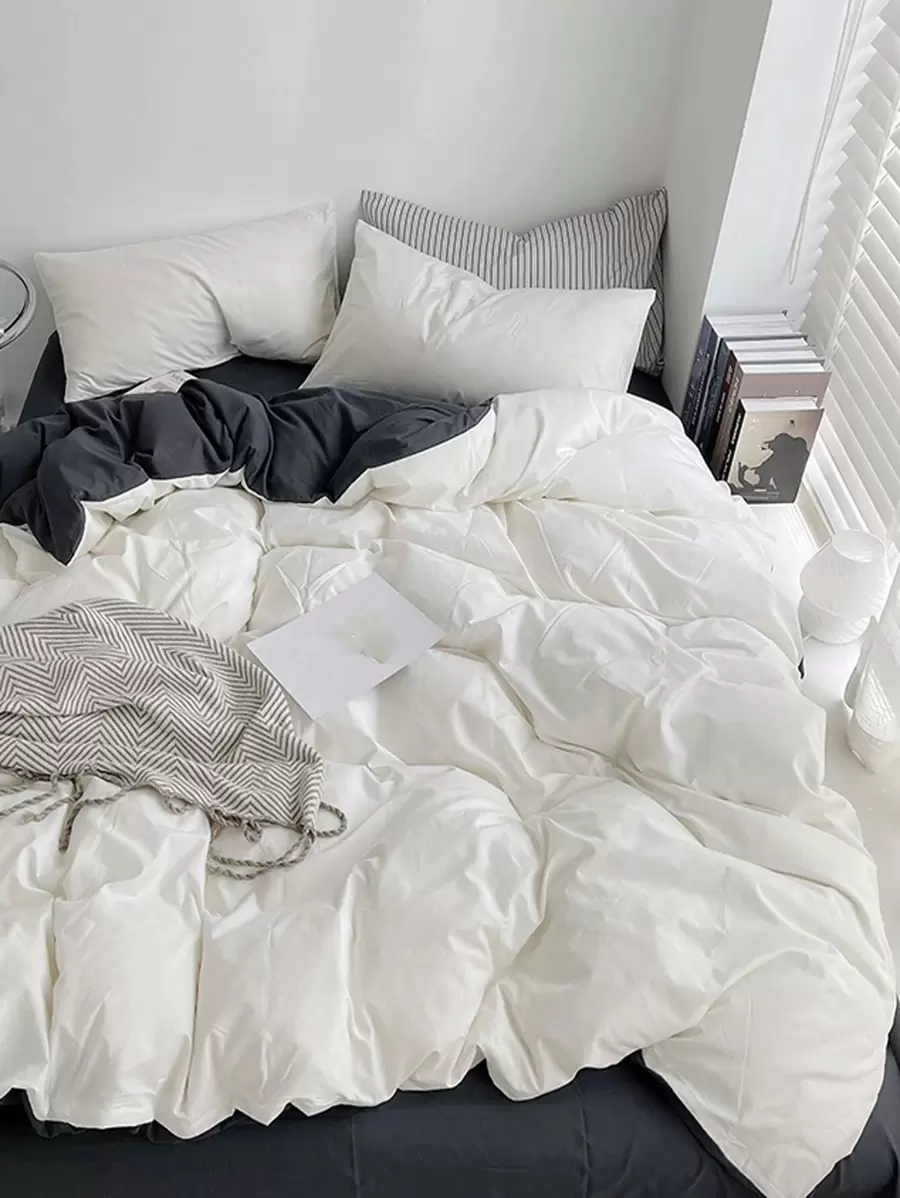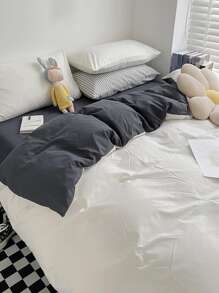 3pcs/set Two Tone Duvet Cover Set (1pc Comforter Cover, 2pcs Pillowcase), Modern Polyester Bedding Set For Home