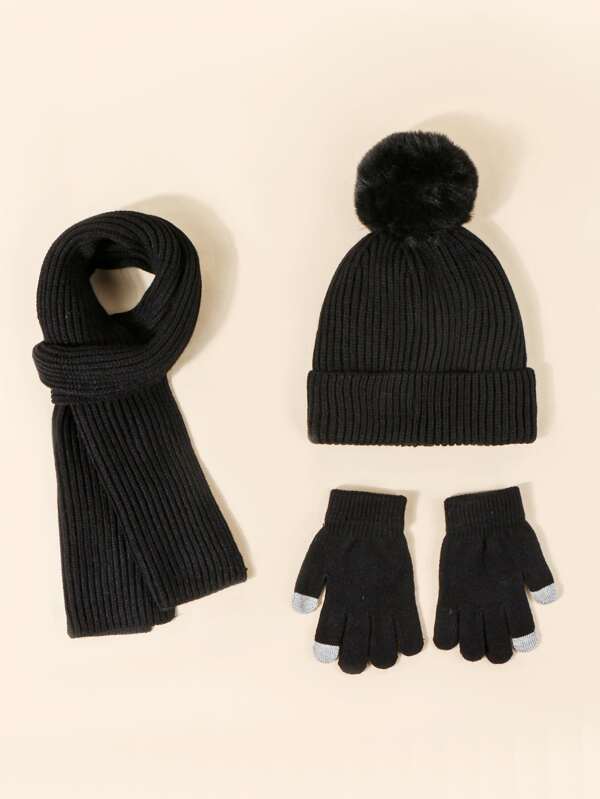 3pcs/set Unisex Black Monochrome Hat + Scarf + Gloves (winter Accessories) Warm Y2k Style For Autumn/winter Outdoors