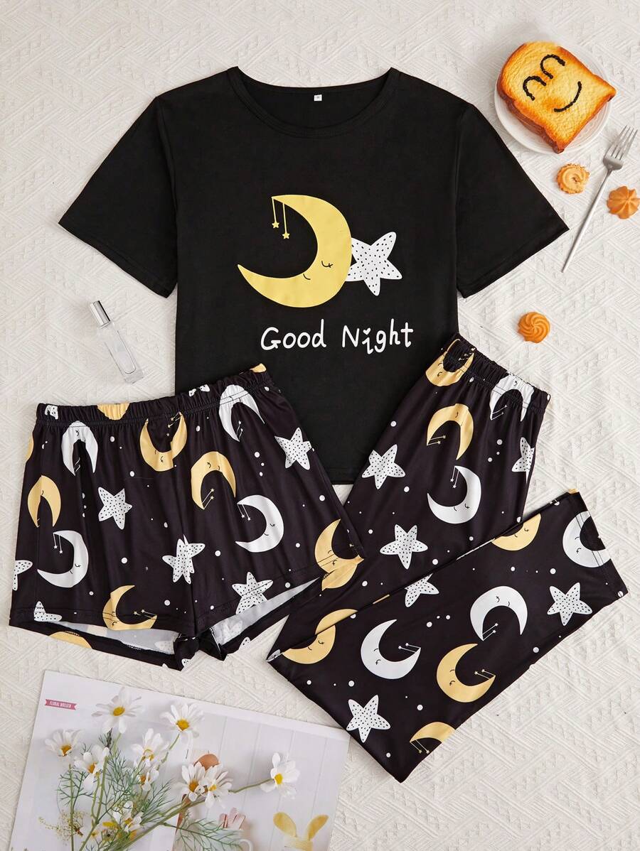 3pcs/set Women's Cartoon & Letter Print Homewear Set