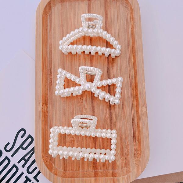 3pcs/set Women's White Pearl Decor Hair Claw Clip Set, Gentle & Strong Hold, Non-slip Design