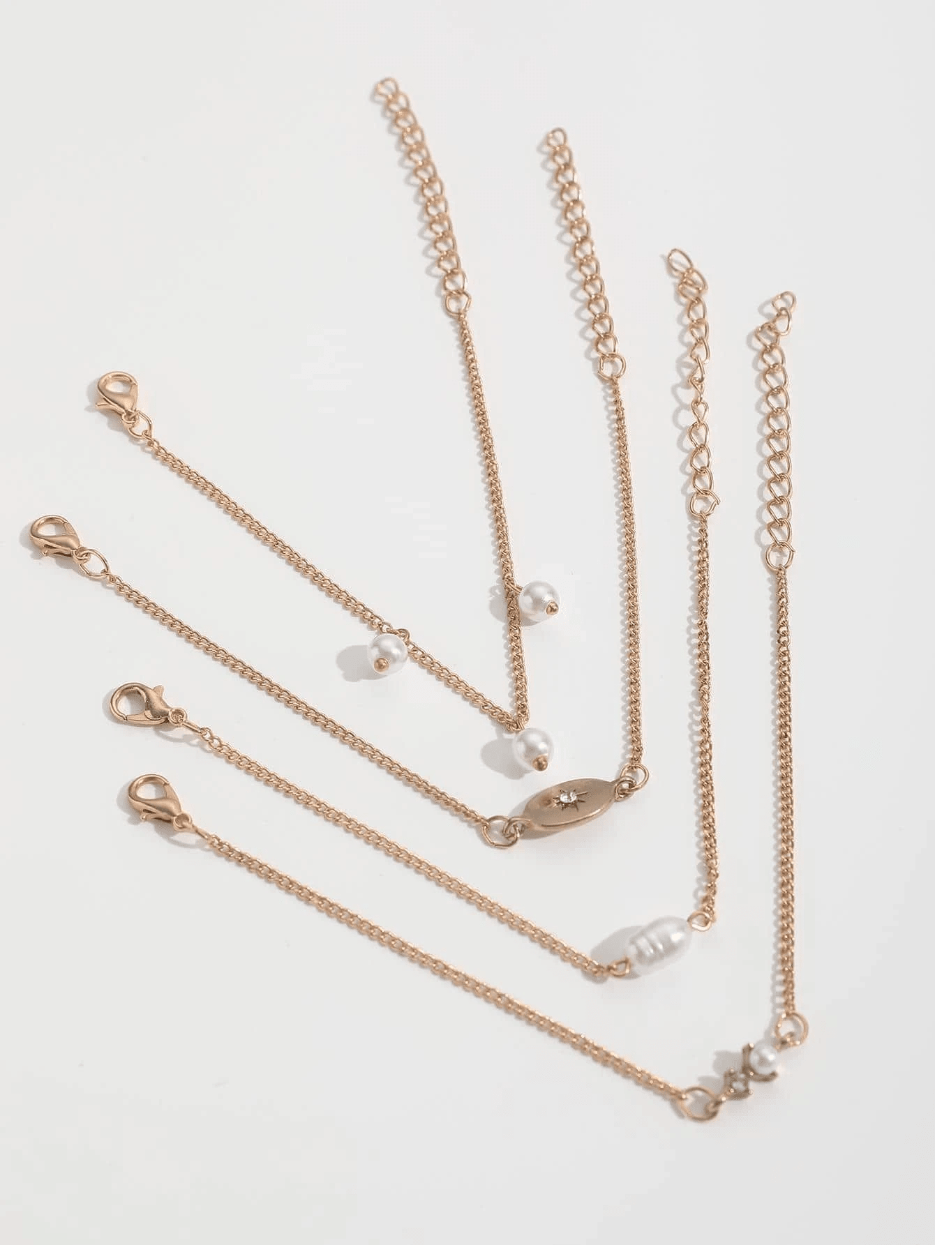 4 Cold-Style, High-End, Diamond-Encrusted Eight-Pointed Star Bracelet Set