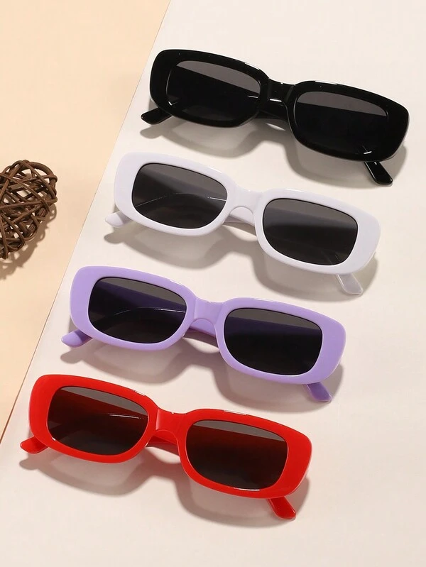 4 Pcs Men's and Women's Middle School and University Children's 10-14Y Rectangular Fashion Glasses for Daily Use