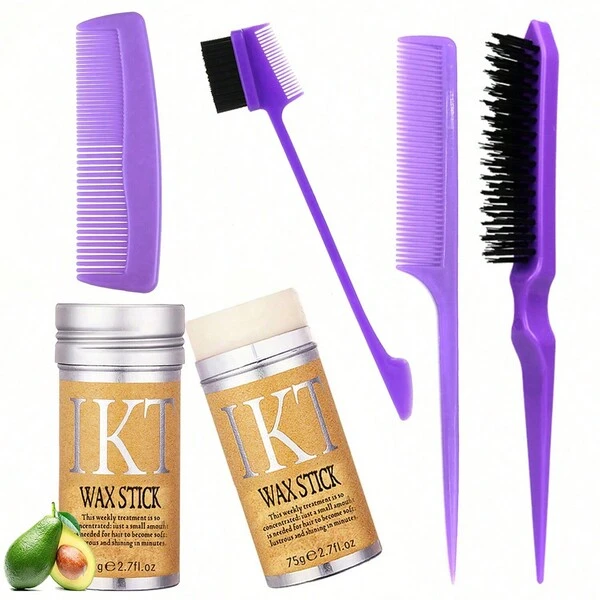 4 Pieces purple Hair Styling Comb Set Teasing Hair Brush Rat Tail Comb Double Sided Edge Brush for Edge & Back Brushing, Combing, Slicking Hair for Women Baby Hair, 1pc Hair Wax Stick for Frizz Hair