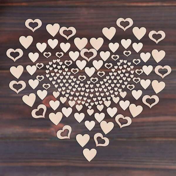 400 Pcs/Set Wooden Decorations Hearts Craft,Hollow Heart Wood Hangings For DIY Wedding Table Centerpieces,Valentine'S Gifts,Card Making
