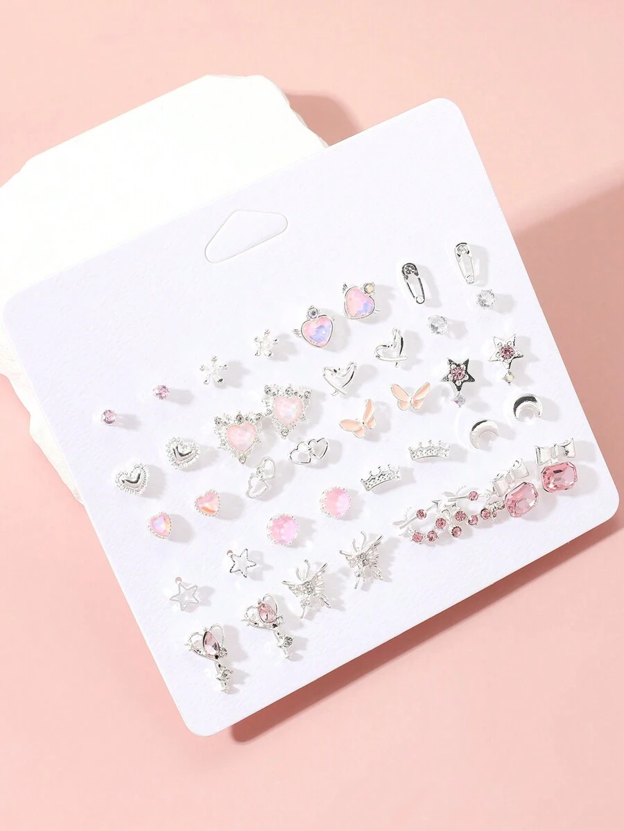 40pcs/set New Arrival Minimalist Heart, Star, Butterfly, Bowknot And Moon Stud Earrings For Women, Random Shipping As Gifts