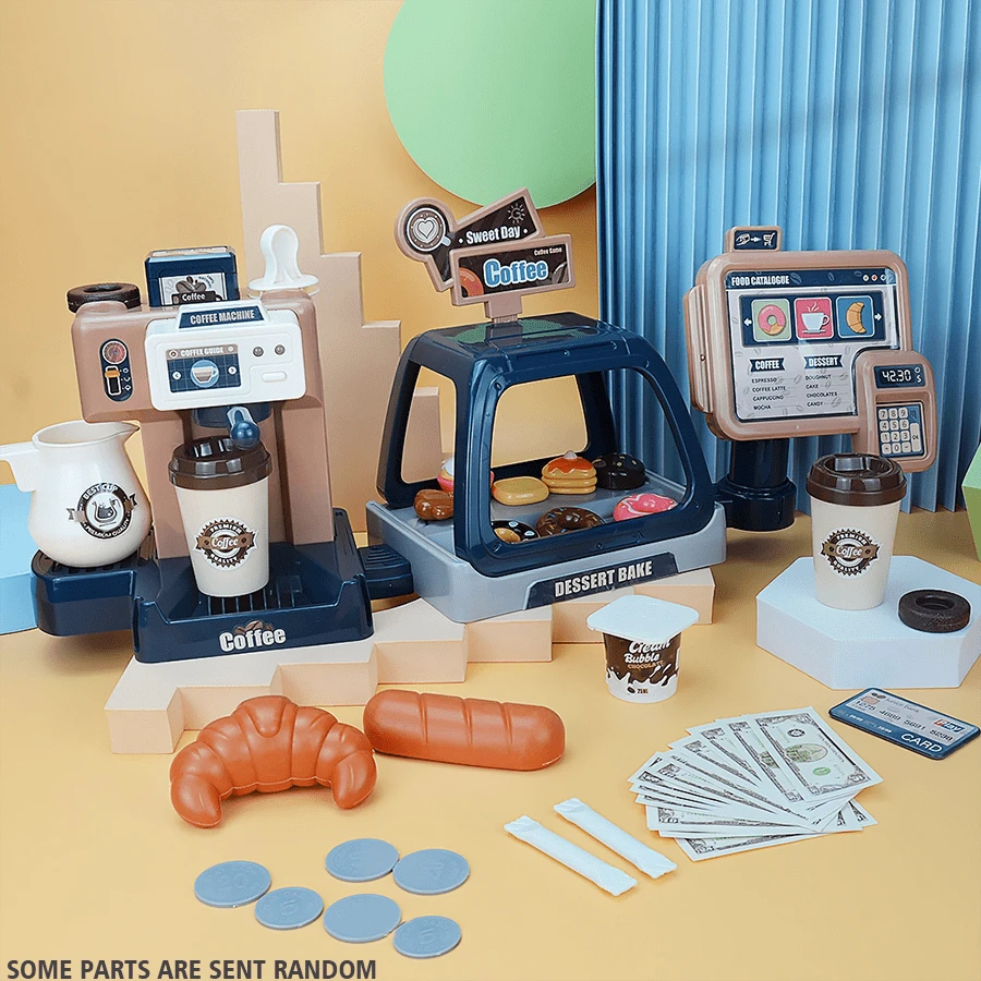 41pcs Blue Supermarket Cashier, Cafe, And Beverage Vending Machine Playset With Pretend Play Accessories, Birthday Gift For Boys And Girls, Indoor Parent-child Interaction