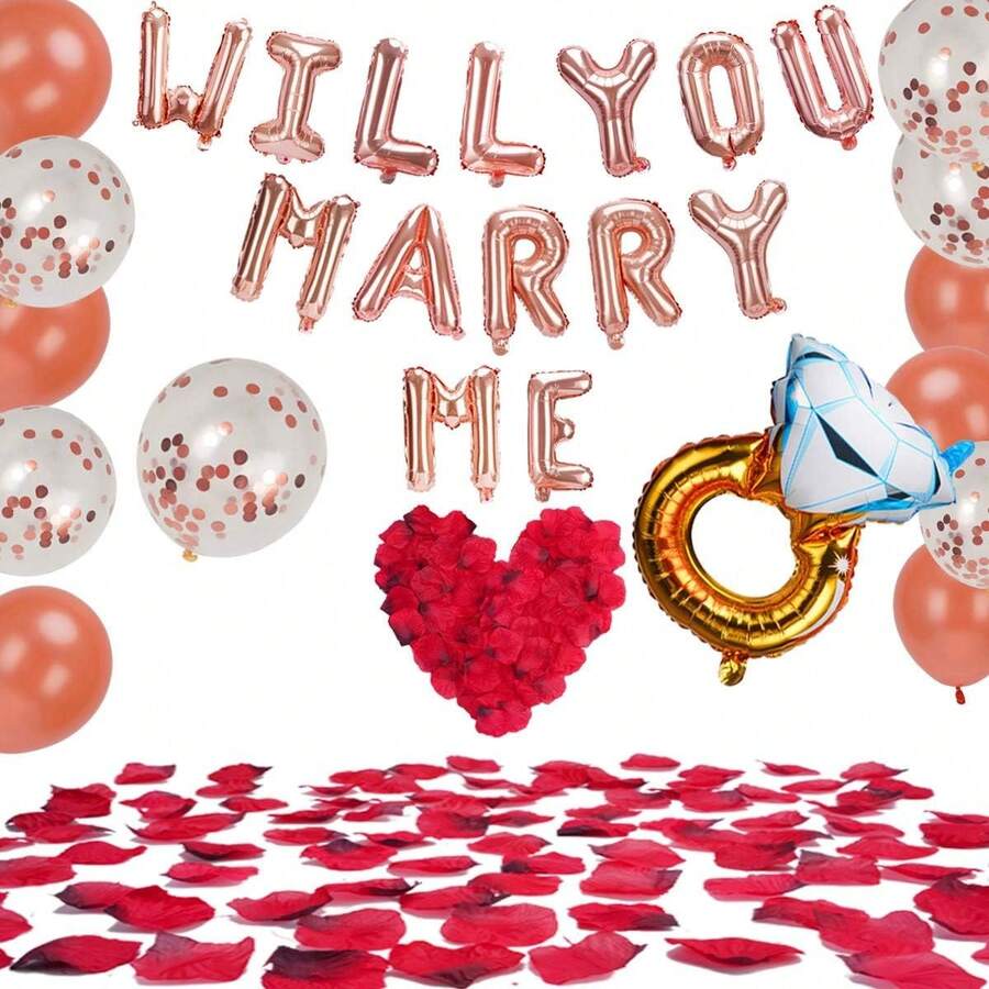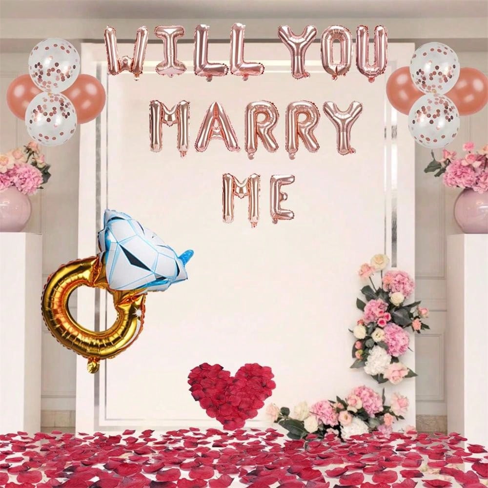 45pcs Rose Gold Will You Marry Me Balloons Diamond Heart Marry Me Balloons With 1000 PCS Red Silk Rose Petals Wedding Flower For Marriage Proposal Ideas Wedding Love Wedding Party Decorations Valentine Party