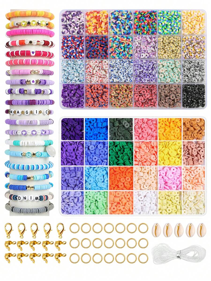 4800pcs Polymer Clay Beads Bracelet Making Kit, 48 Colors Polymer Beads Spacers Soft Pottery Kit, Jewelry Making Kit With Charms Pendant & Elastic Cord, Diy Craft Gift