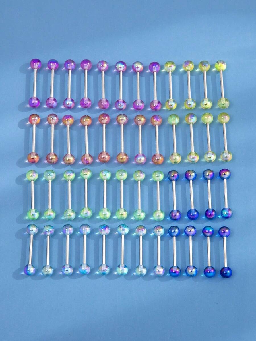 48pcs Stainless Steel Tongue Stud With Multicolor Acrylic Resin Jelly Coating, Perfect For Women'S Daily Wear