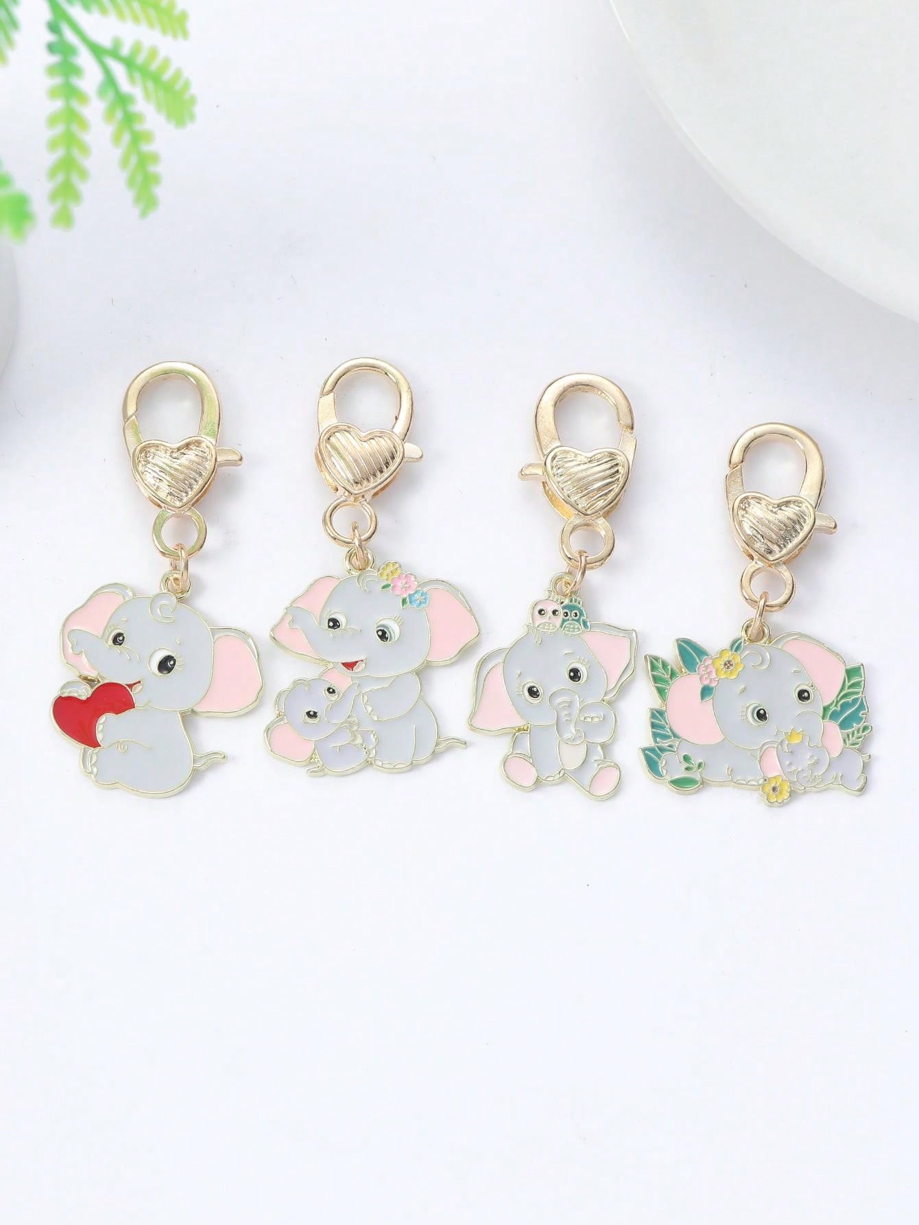 4PCS Metal Lucky Cute Elephant Keychain DIY Bag Pendant Metal Headphone Bag Charm Lover Best Friend's Gift
