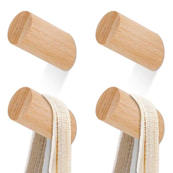 4PCS Wooden Wall Hooks, Coat Hooks, Wooden Hooks For Hanging On The Wall, Hat Hangers On The Wall, Towel Hooks For Bathroom, Bedroom, Living Room, Kitchen, With 4 Nails