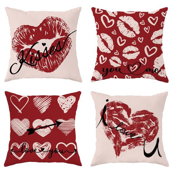4Pcs Heart Lip Print Text Red Valentine'S Day Throw Pillow Covers, Valentine'S Day Romantic Modern Pillow Covers, Velvet 45*45Cm/18"*18" Decorative Cushion Covers, Suitable For Home Decoration Party Gifts Living Room/Bedroom/Sofa/Bed Decoration