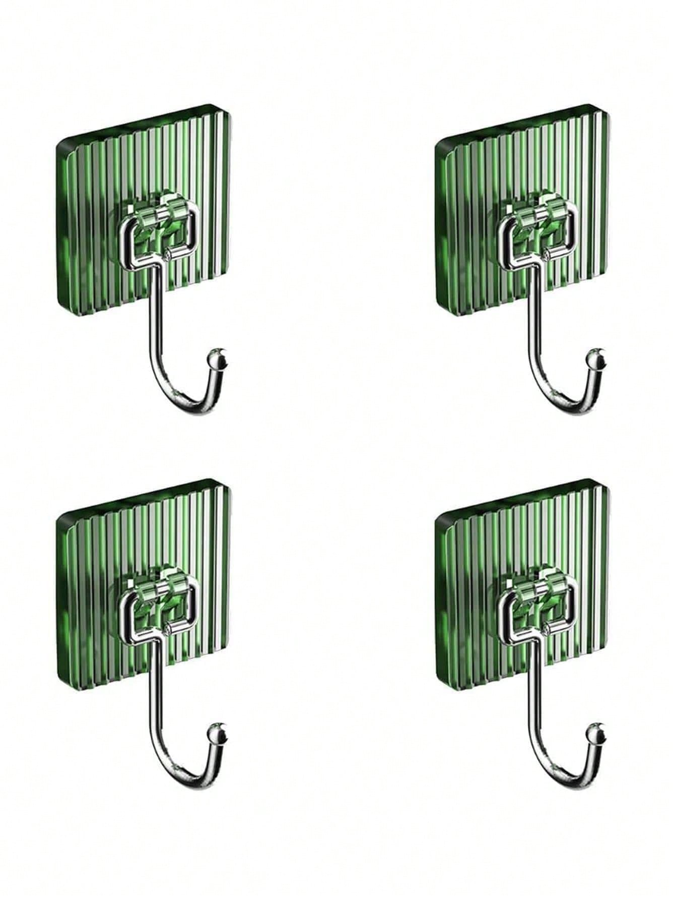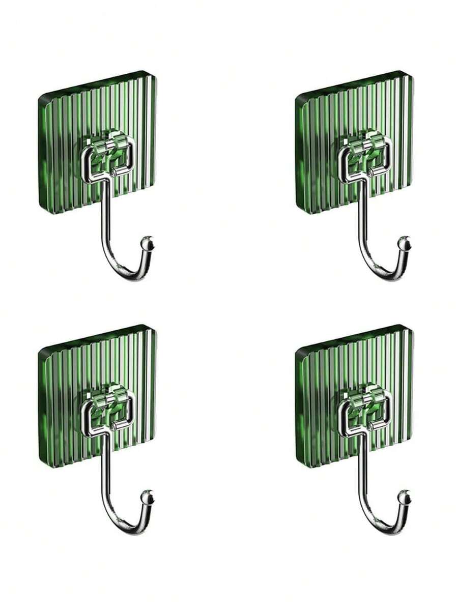 4Pcs Wall Hooks For Hanging Heavy Duty, Self Adhesive Hooks For Kitchen, Wall Hangers Sticky Hooks Without Nails For Bathroom,Bedroom And Office(Green)