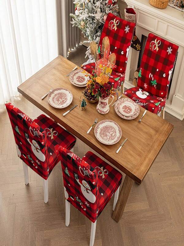 4Pcs/Set Fabric Christmas Tree Santa Claus Elk Dining Chair Slipcovers, Elastic Restaurant Chair Cover For Hotel Dining Room Office Banquet House Home Decor