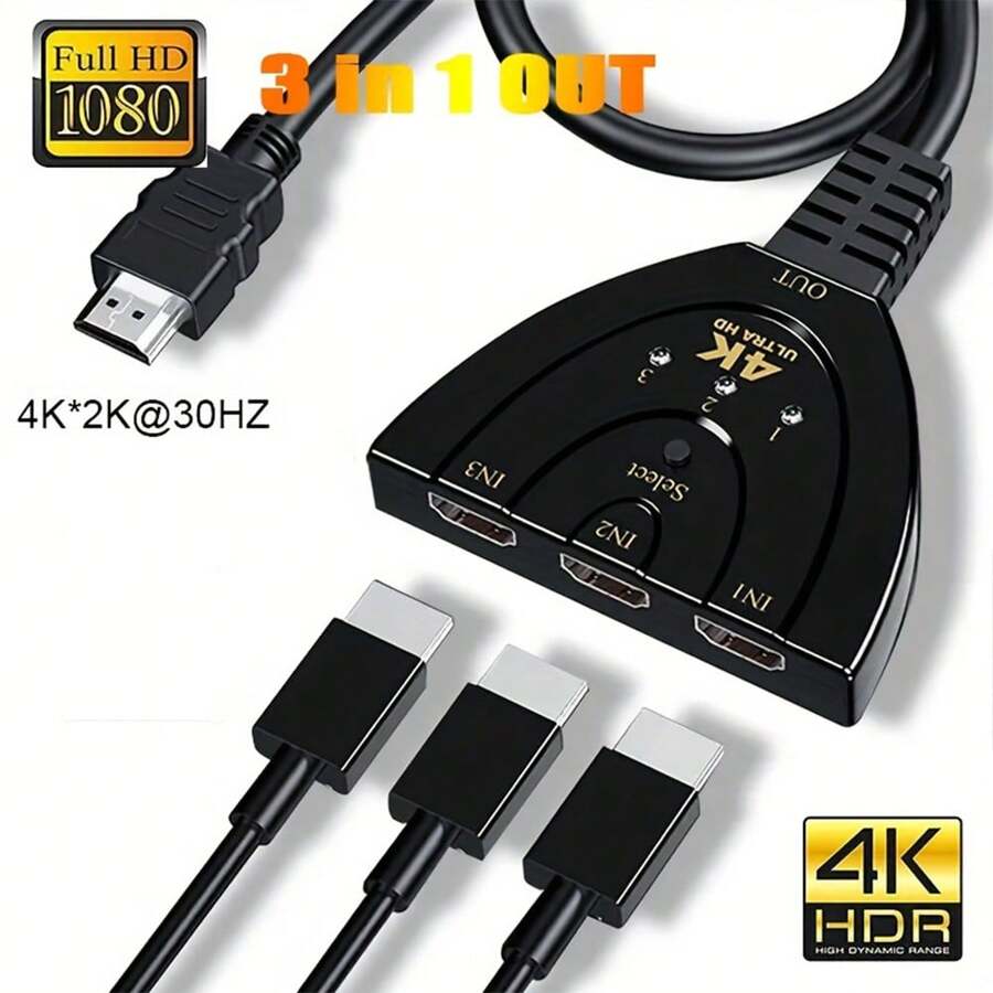 4k@30hz 3 In 1 Hdmi Switch Cable Splitter Adapter High Speed Hdmi 2.0 Compatible Switcher For Pc Tv, Xbox Ps3 Ps4, Projector, Display Splitter