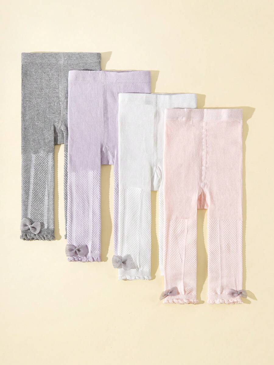 4pairs Girls Bow Decor Fashionable Tights For Daily Decoration