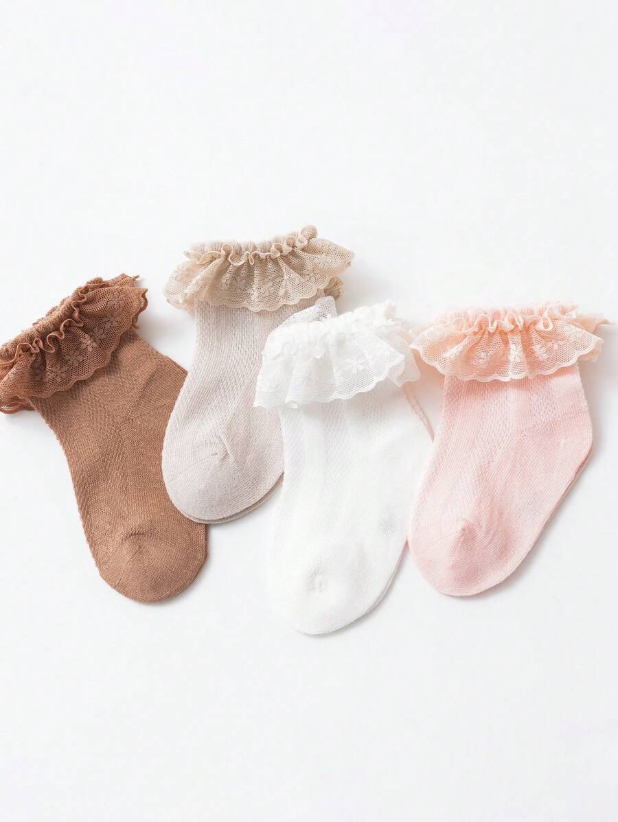 4pairs Kids' Mesh Thin Lace Trimmed Dance Princess Style Socks, Ideal For Casual, Holiday, Birthday And Daily Wear