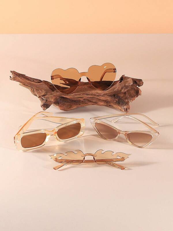 4pairs Women'S Brown Plastic Fashionable Glasses With Different Styles, Suitable For Daily Wear, Show Personalities And Fashion Sense In Autumn